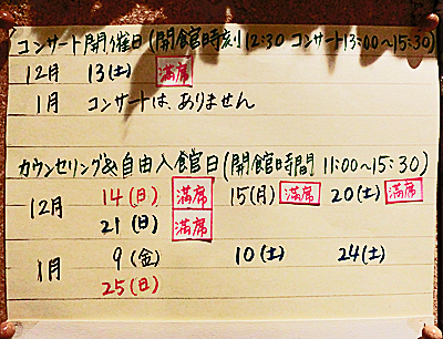 2012年4月〜25年12月の、合計98回の音楽療法コンサートは、ご予約で満席となりました。