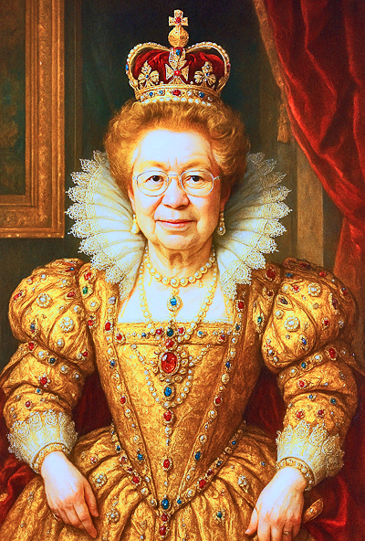 あまりにも怖い表情にビビったので、あわてて、その正反対と言える、気品に満ちた穏やかな表情を、どうぞ・・・なるほど、どこかの立派な王室の女王様のようですが、その顔は、まるで私のよう・・・そのためか、裕福な女王様にしては、メガネに、安物感が漂っておりますが・・・