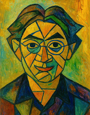 また、「ピカソ風に」と命じてみたら、AI君には簡単すぎるらしく、あっという間に届けられたのが、こちら・・・思わず、「うまい!!」と褒めてしまいましたが、う~ん・・・(この不気味さは、AI君のせいではなく、ピカソの作風のせいですから、AI君に罪はございません)