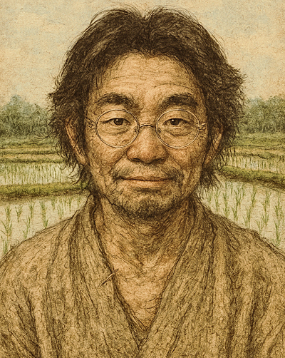 今度は一転して、こんなに情けなさそうな、ガリガリに痩せ細った(?)私の姿・・・なにしろ、「江戸時代の貧しい農民」「背景に田んぼ」と、指示してみたのですから・・・(なぜ、鉛筆画にしてみたのかは、AIの勝手な判断なので不明ですが、結果的に、いい味を出していますよねぇ)