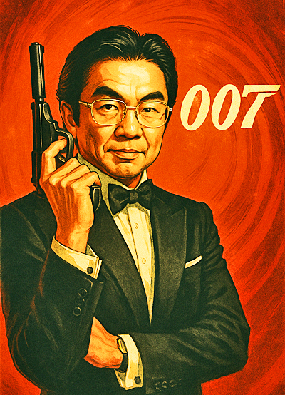 こちらは、ご存じ、スパイ映画の最高峰「007」の、次回作のポスター(?)ですよ・・・なんだか、とっても似合っているので、自分でもビックリ仰天!!