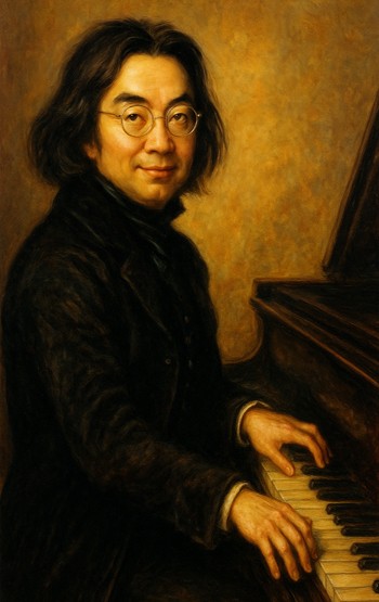次は、音楽史上最高のピアニストであり、「ラ・カンパネラ」などの作曲家としても知られる、ピアノの魔術師、「フランツ・リスト」・・・このように、顔の角度や表情も、自由自在に、AIが自己判断で変えてくれるんですよ。(ただし、手の置き方が、ピアニストとしては、不自然すぎますが・・・笑)