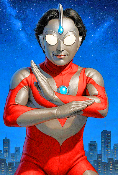 AI君の才能に、心底から感心した私は、「スペシウム光線を発射するウル*ラマン」に、変身させてみましたよ。すると・・・