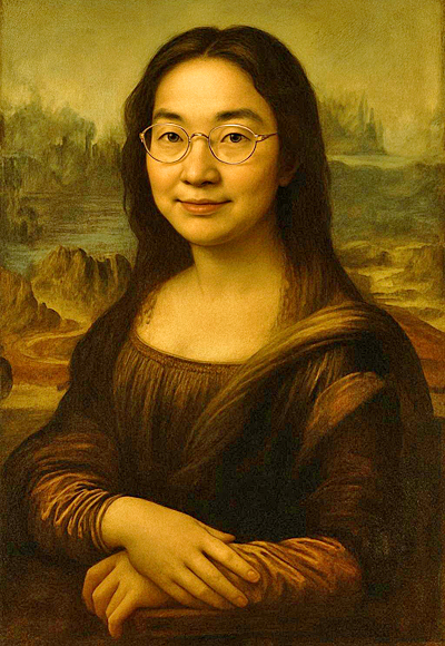 こちらは、ただ一言、「モナリザ」と命じてみただけなのですが・・・う~ん、やはり、本物のモナリザには全く描かれていない「眉毛」(しかも太すぎる)の存在が、違和感マンマンの原因かと・・・(いま気づきましたが、メガネも余計ですね)