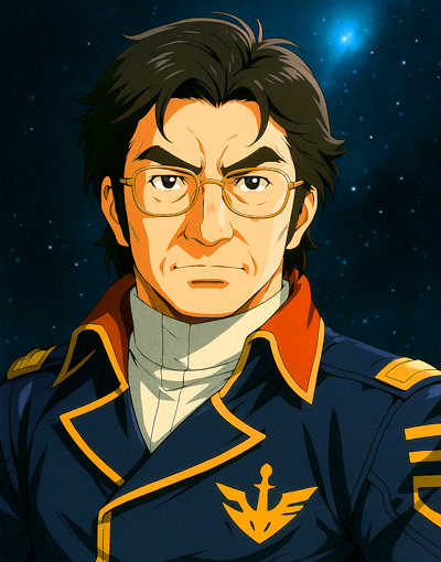 出ました!! 私の青春時代を彩ってくれた、「宇宙戦艦ヤ*ト」の「沖*艦長」の姿に、私を重ねてみましたよ。もっと年上の設定にすれば、さらに似てきたかも・・・おっと、艦長のシンボルである帽子を被らせるのを、忘れていました(涙)。