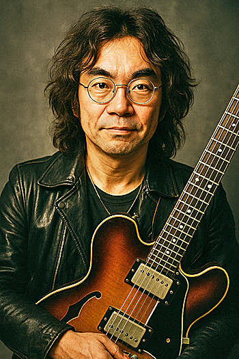 さらに、ロンドンと言えば、「ビートルズ」を代表とする、ロック・ミュージックの聖地・・・AIに「エレキギターを持つロックスター」と命じたら、こんなにカッコイイ画像を、納品してくれましたよ。AI君、わかってらっしゃる!!(眉毛を見れば、この男が私であることは、一目瞭然ですよね)