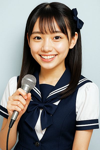 私が最初に命じたのは、「10代の可愛いアイドル」だったのですが、しばらくしてAIの方から、なんと、「清楚系、制服系など、具体的なご要望をください。この条件でよろしければ、『はい』と答えてください」と提案が来たので、そのままに「はい」と返事してみたところ、こちらの写真が納品されたのです。
