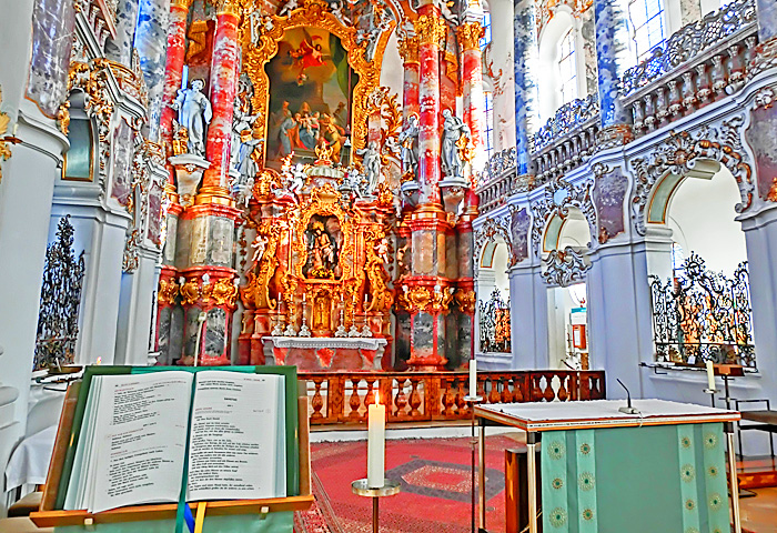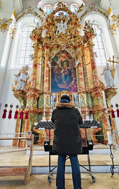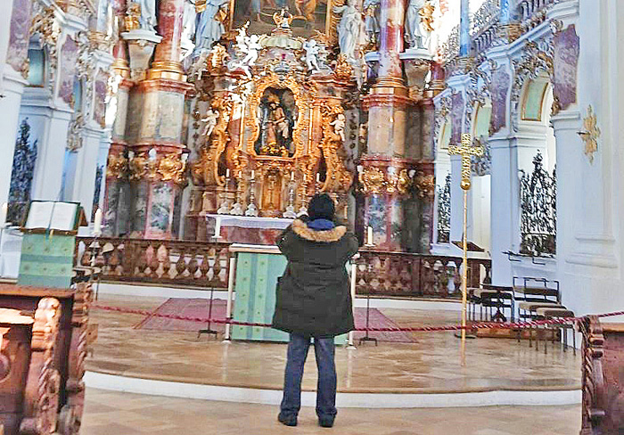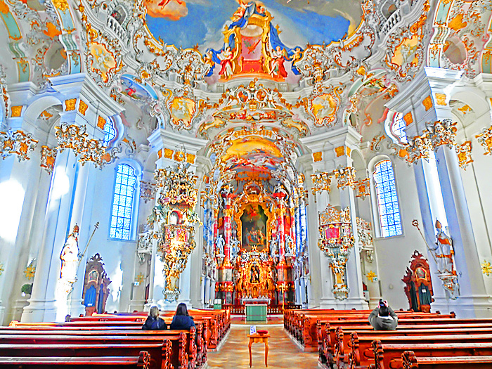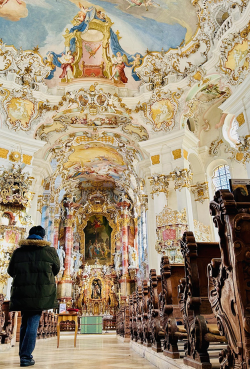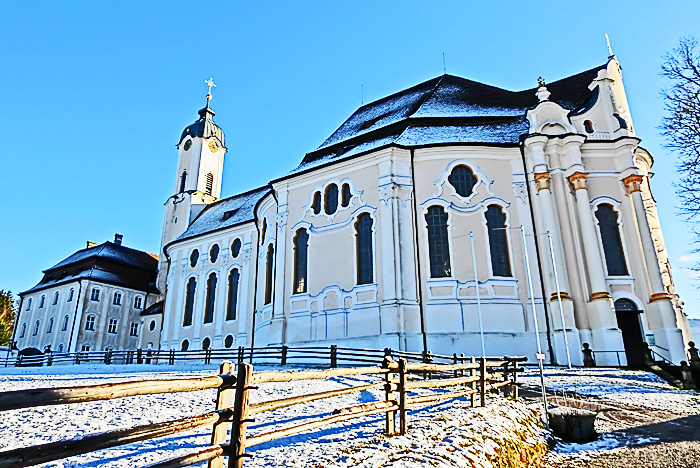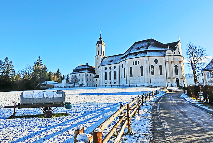 次の目的地である、世界遺産「ヴィースの巡礼教会」に、到着しましたよ。