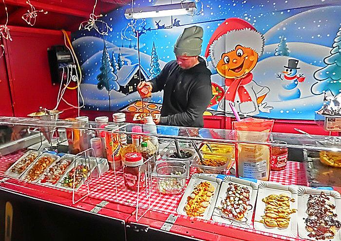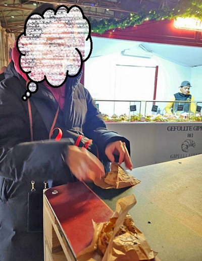 クリスマス・マーケットは、キリスト教のお祭りであり、基本的に、クリスチャン以外の人々は集まりませんので、アジア人は、ほとんど見かけません・・・その点、我々を含む日本人は、「世界の様々な宗教から、状況に応じて都合の良い所だけを、つまみ食いできる」という、矛盾に満ちた特技(笑)を持っていますので、クリスチャンでなくても、問題なくクリスマスを楽しめるんですよねぇ・・・