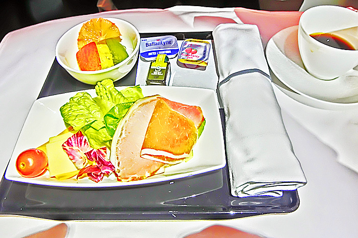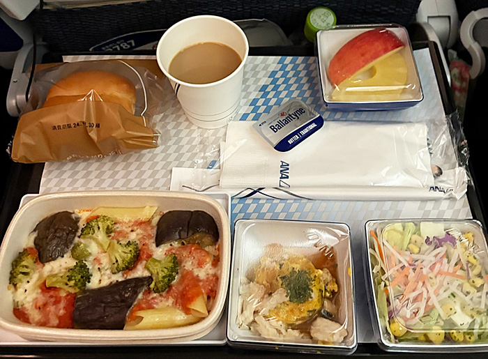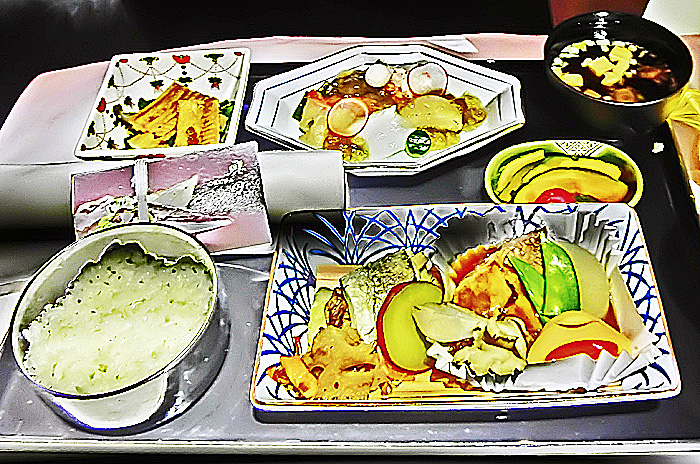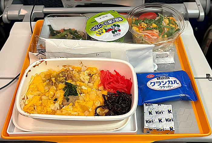 ちなみに、エコノミークラスの食事は、次のような内容だったそうですよ。まあ、眠る直前に食べるわけですから、これでも、普段ならば、「食べすぎ」と呼べる内容ですよね・・・