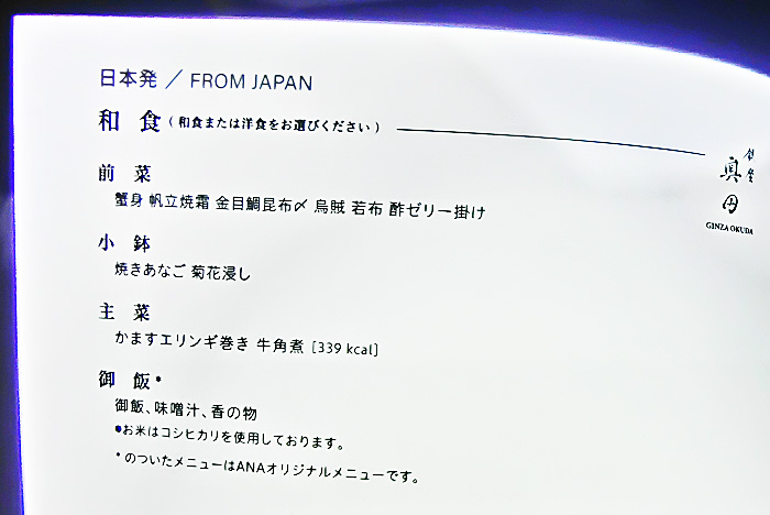 夕食は、和食と洋食から選べるのですが、私は「和食」を選択・・・洋食は、わざわざ機内で(日本で作られた模造品を)食べなくても、これから訪れるヨーロッパで、本場の本物を食べられますからね(笑)。