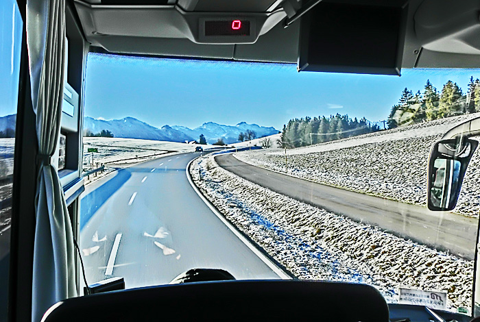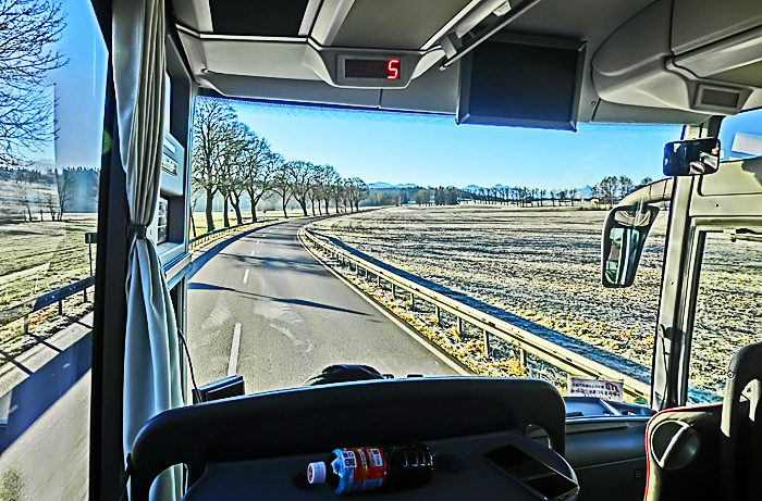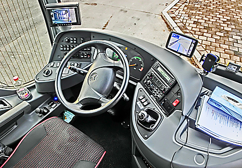 う〜ん、運転席も、カッコイイですねぇ!! 観光バスの運転手さんは、ハンガリーなど、周辺の国々から、出稼ぎ(?)に来られている御方が多いとのこと。