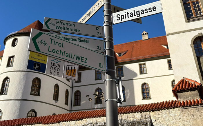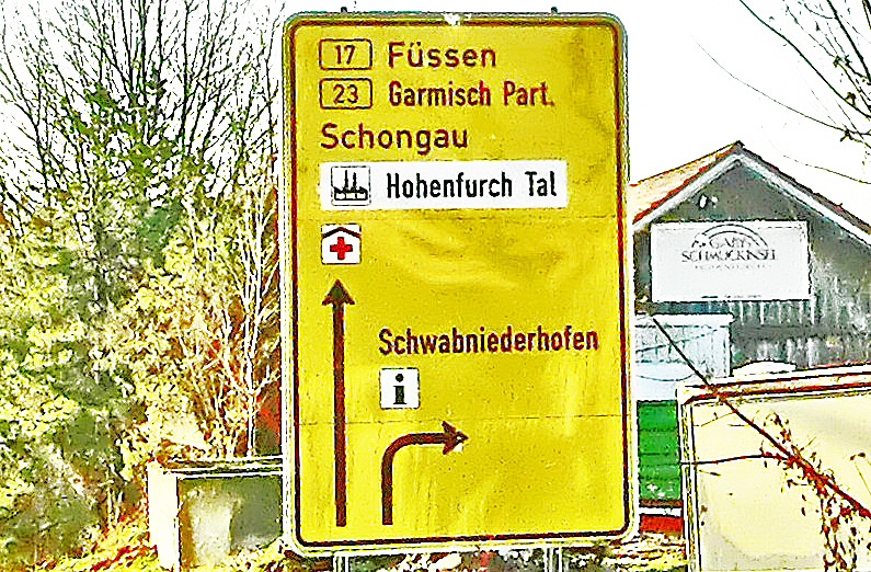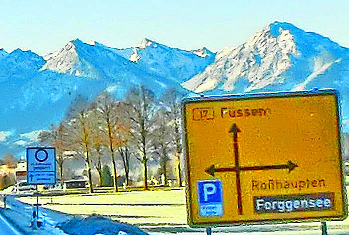 高速道路から降りて、目指す「フュッセン」の方向へ・・・いかにも「ドイツ語」らしい地名が続出してきて、ますます異国情緒が高まり、またもや感涙にむせぶ私・・・