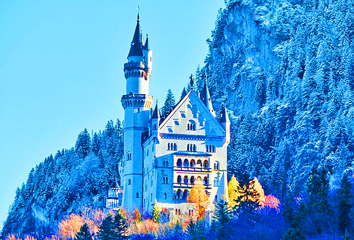 世界中で最も有名な城と呼ばれ、「王様・王妃(王子様・お姫様)のお城」のイメージを代表するのが、この「ノイシュバンシュタイン城」(新・白鳥城)。