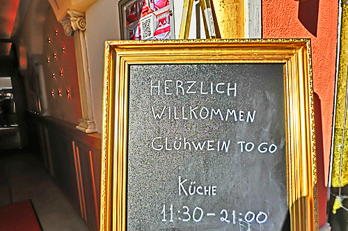 レストランの入口には、「心から歓迎します」「温めたワインの持ち出し可能」と、書いてあるような気が・・・(ちなみに私は、ドイツ語は全くできません)