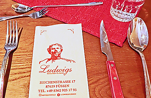 レストランの2階に上がると、各座席には、「ルートヴィヒ2世」の御顔が・・・何だか、これだけでも、お店の格が上がり、料理も美味しく感じられそう・・・素敵な演出ですよねぇ。