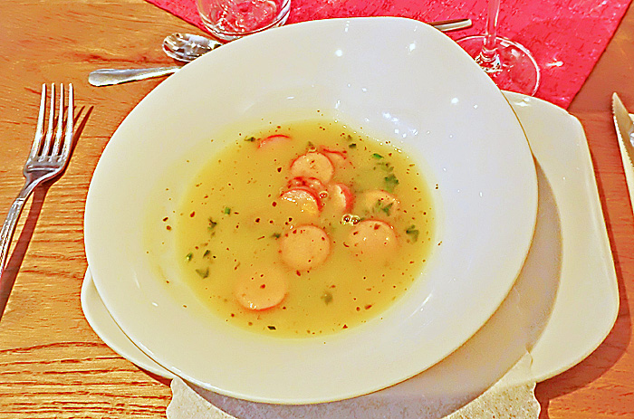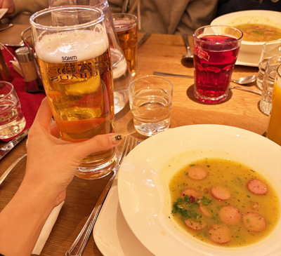お料理としては、まず、地元・バイエルン名物の、このスープが出て・・・(料理名に詳しくないため、ごめんなさい)
