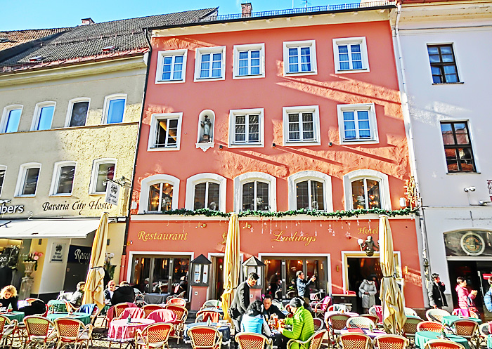 バスを降りて歩くこと数分で、昼食会場である、「ホテル・ルートヴィヒ」に到着・・・この街でトップクラスの人気を誇る、有名なホテル&レストランなのだそうですよ。