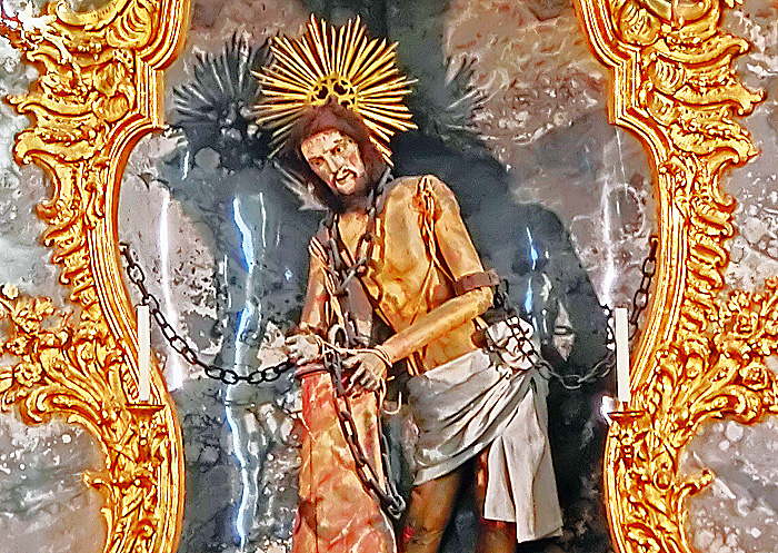 おおっ!! あの正面に見えるのが、かの有名な、実際に涙を流したという、「クサリにつながれてムチで打たれているイエス・キリスト像」では?
