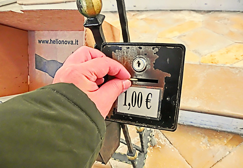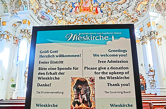 ふと気づくと、看板が立っており、「ようこそ、おいでくださいました! この教会は無料ですが、どうか教会を維持するために、ご寄付をお願いいたします。ありがとうございます!」と、書いてありますよ。(左側のドイツ語は読めませんので、右側の英語を読んでみました)