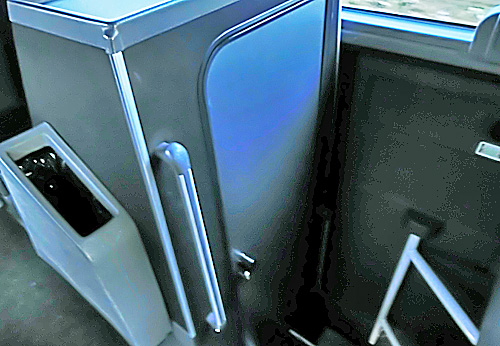 トイレの中は、意外にも(?)、清潔で充分な広さがあって、快適に使用できましたよ。皆さん、恥ずかしがって(?)なかなか使わないので、「それじゃ、僕が最初に解禁しましょうか(笑)」と、喜色満面で使用してみせたところ、次々に使用者が出現・・・その結果、最終日には、運転手さんから、「もうタンクが満タンなので使用禁止!!」と、叱られてしまいました(涙)。