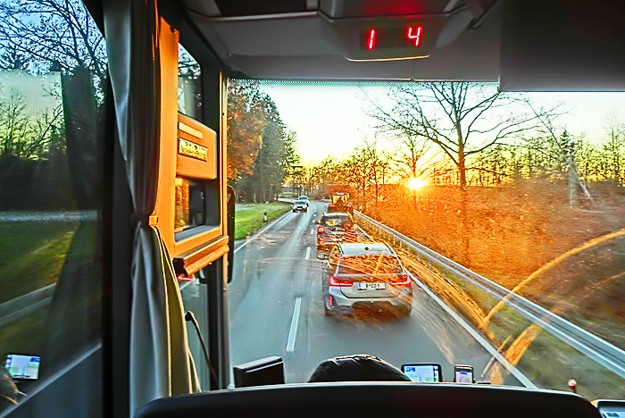 熟睡・爆睡する我々を乗せて、バスは、美しい夕暮れの高原を、スイスとの国境へ・・・それにしても、バスの表示板を見ると、今度は、「1」と「4」が離れて表示されているという、怪奇現象が・・・いったい、こいつは、何を表示してくれているのでしょうか?