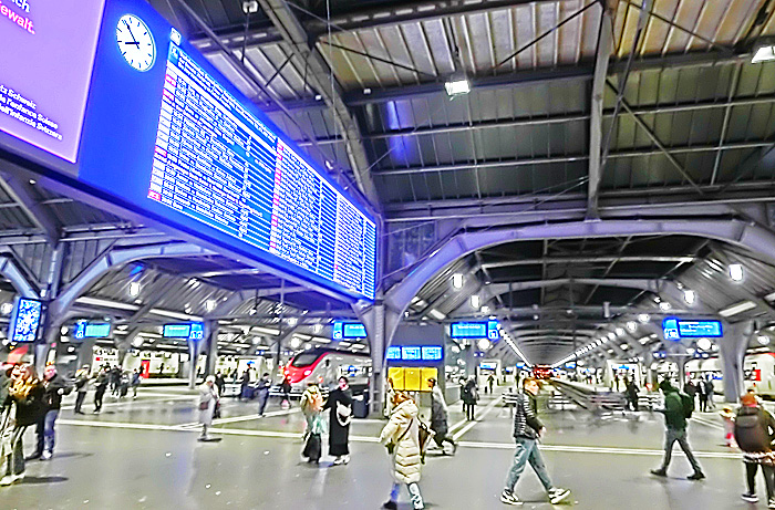 毎日、大量の列車が出入りする、ヨーロッパ最大級の駅なのだそうですから、さすがに巨大!!(ドイツやスイスの多くの駅には、「改札」がありませんので、切符を持っていなくても、勝手に列車に乗れるんですよ・・・その代わり、車内では頻繁に、調査官が切符を調べに来て、もしも持っていなかったら、何万円もの罰金を払う羽目になってしまう仕組みです)