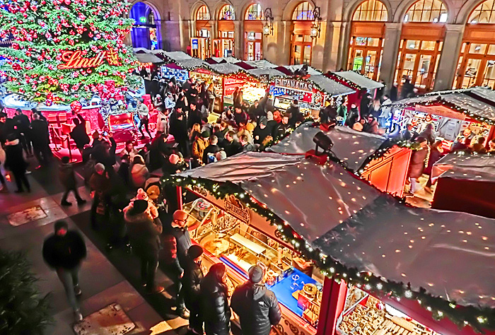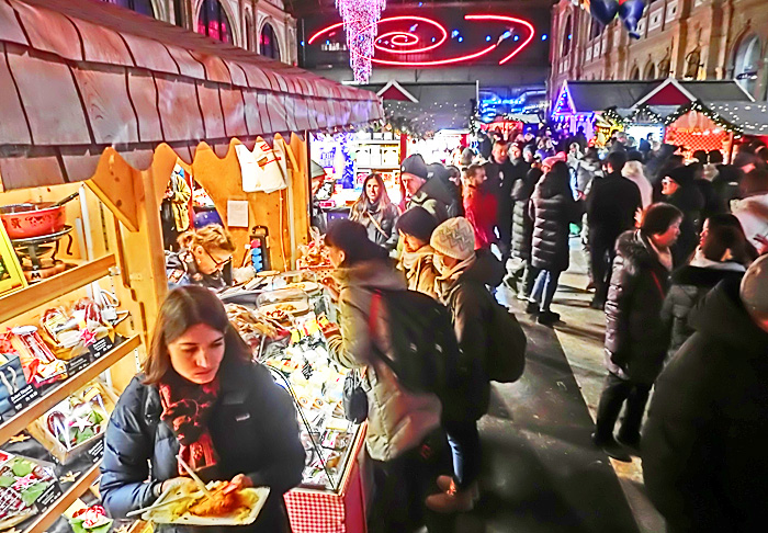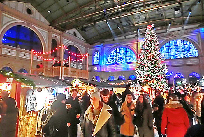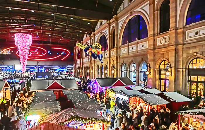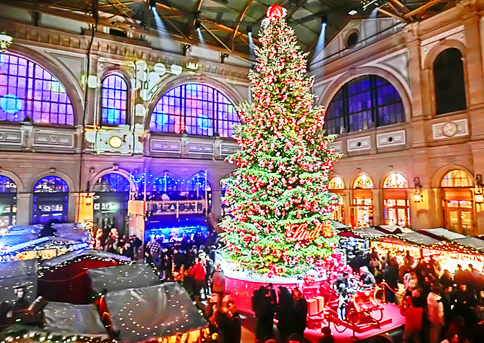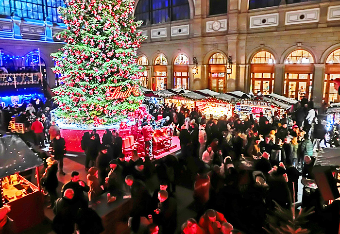 駅舎の中を、しばらく歩いてみると・・・本日の最終目的地である、欧州最大の屋内型クリスマス・マーケットに到着!!