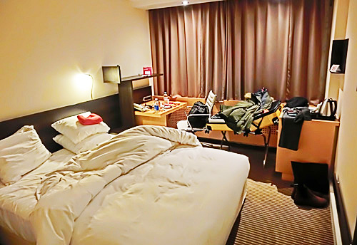 今夜のホテルの部屋は、こんな感じで・・・結果的には、3泊した中で、この夜が、いちばん良い部屋でした。まあ、深夜に眠って早朝に起きるだけですから、立派な部屋は、不要なのですが・・・