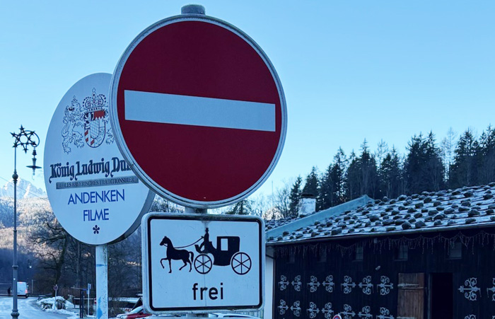 なるほど、「車両進入禁止」の標識の下に、「馬車はご自由に」と書かれているような気が・・・(ドイツ語の「frei」は、おそらく、英語の「free」と似たような意味ではないでしょうか?)(ちなみに私は、ドイツ語は全くできません)