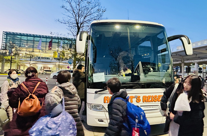 皆さん、「うわ〜楽しかったぁ!!」と満足そうに、バスに乗り込んできますよ。気温の表示を見ると、「3」と書かれていますから、さすがに寒そうな印象ですね。