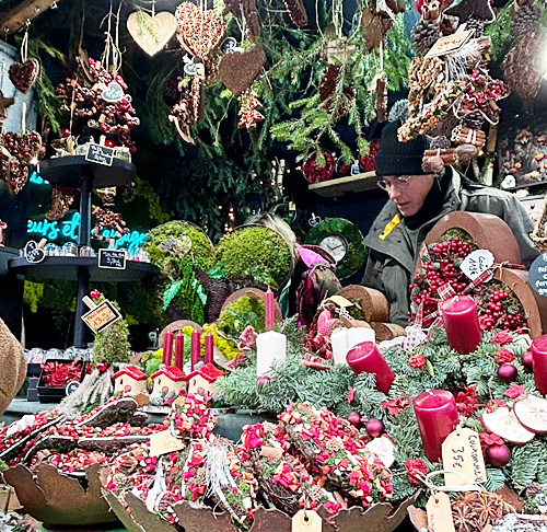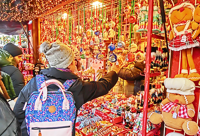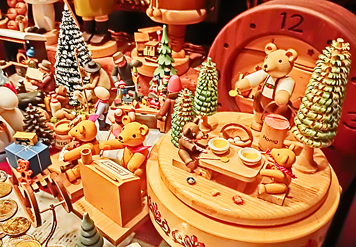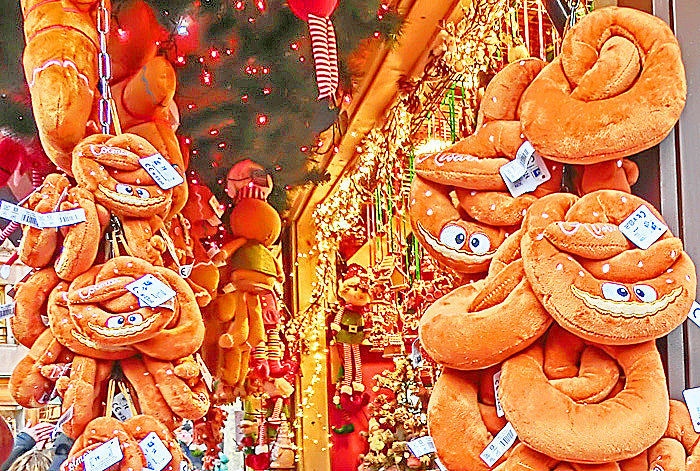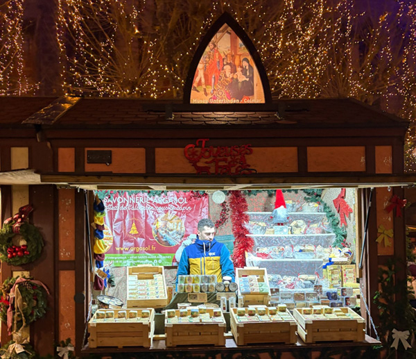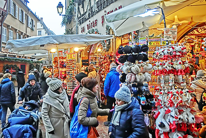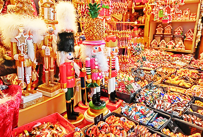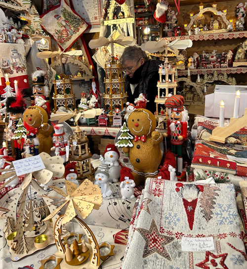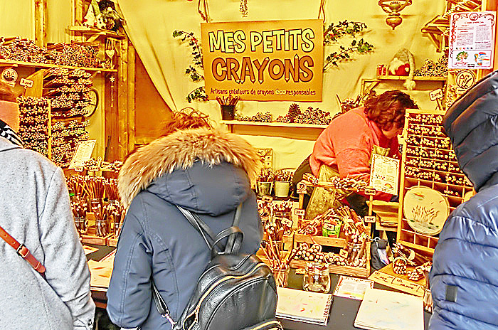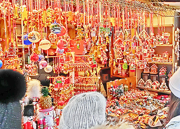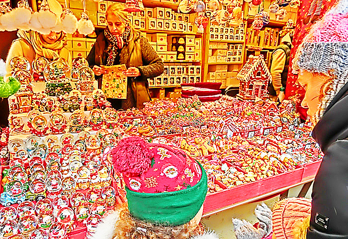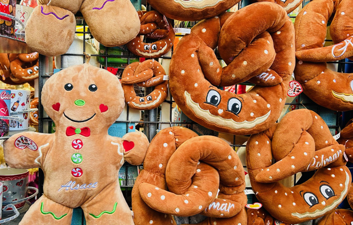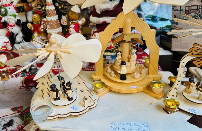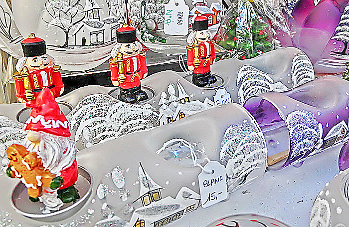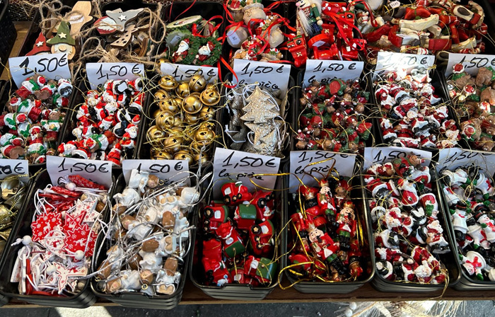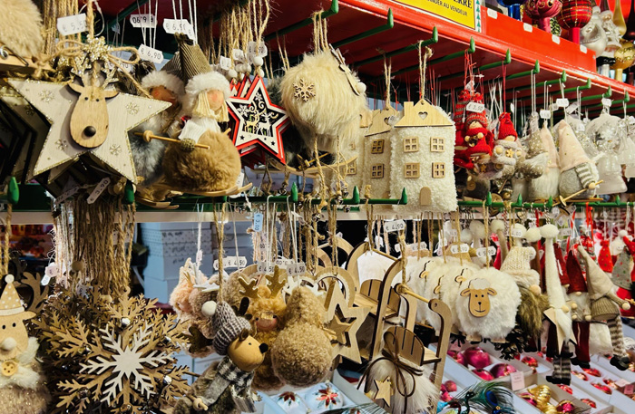 コルマールの屋台小屋では、「クリスマスに関係しないものは販売してはならない」という決まりがあるため、どのお店の商品にも、「この時期だけ」という希少価値があるとのこと。他の街のクリスマス・マーケットでは、「ふだんも自分の店で売っている商品を、単に屋台小屋に持ってきて並べるだけ」という店も多く、「な〜んだ、売っている物は、地元商店街のいつものセールと変わらないぞ!!」と、ガッカリさせられることが多いため、コルマールでは改革を進めたのだそうですよ。