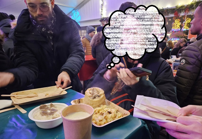 しかし、この時点では、後で直面する大惨事の原因が、まさに、この時間帯に発生しているのだということに、まったく気づいておりませんでした(涙)・・・ああ、この時間帯まで、時の流れを巻き戻すことができたなら、こんな場所で時間を浪費するのは避け、トイレの存在など口にしないで、さっさとクリスマス・マーケットに突入するのですが・・・