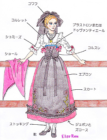 アルザス衣装には、次のように、きちんとした決まりがあるとのこと・・・日本の「着物」に、こまごまとした決まり事があるのと、同じことですよね。