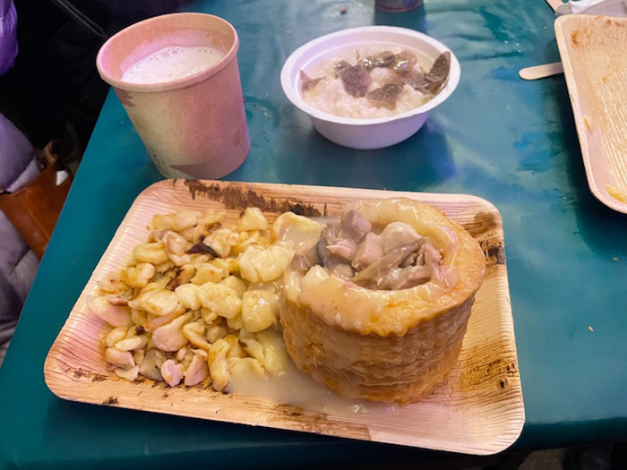 さて、これほどの大混雑の中、我々の仲間たちは、どうなさっているのでしょうか?・・・後で確認してみると、ちゃっかりと現地人に紛れ込んで、しっかりと名物料理を食べることに成功なさった強者(つわもの)たちから、次の写真の数々を頂戴しましたよ。