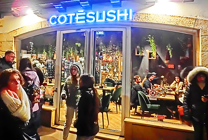 おや? この店には、確かに、「S U S H I」という文字が・・・「COTE」というのは、フランス語で「小屋」という意味だそうですから、シンプルに、「寿司屋」という店名なのでしょうか? お客様もたくさん入っており、繁盛している模様ですから、日本人としては、とっても嬉しいですよねぇ。