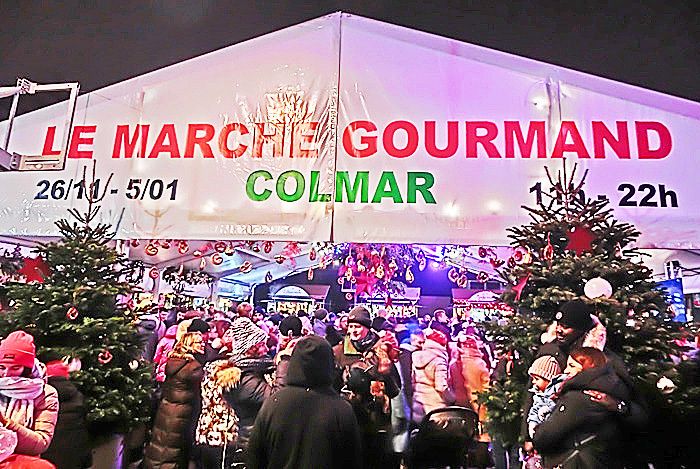 ここが、コルマールで最も人気が高いと言われる、「ドミニカ教会前のクリスマス・マーケット」・・・昨夜ほどではありませんが、やはり、それなりに混んでいますねぇ。
