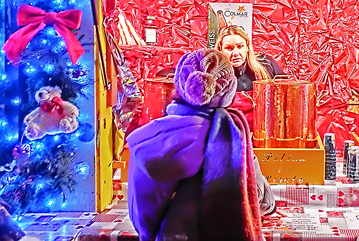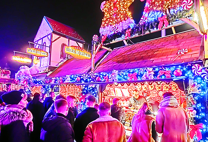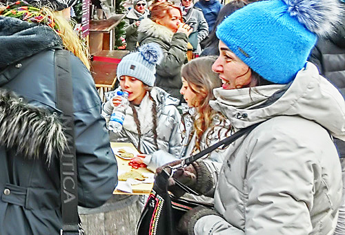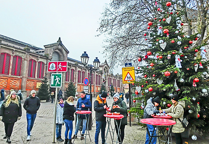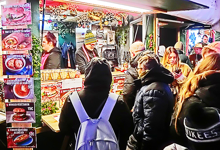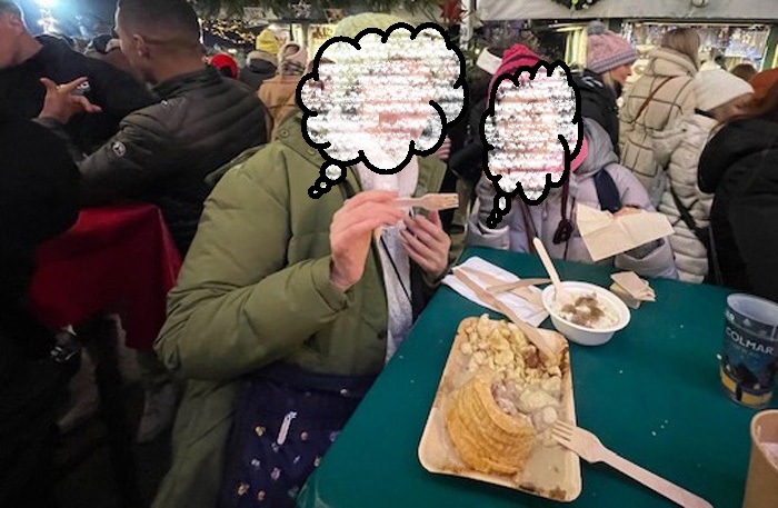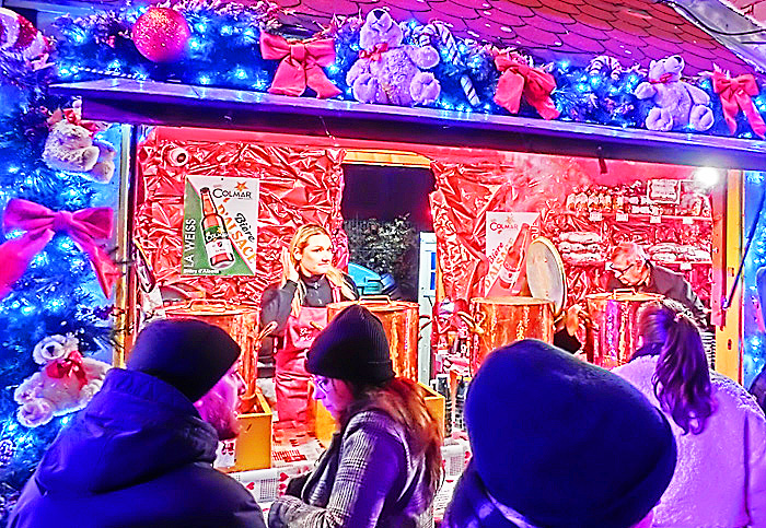 日本で行われるクリスマス・マーケットを観察すると、客の大半は、女子中学生、女子高生、女子大生、20代のOL(社会人女性)で占められているのですが・・・ご覧のように、コルマールのクリスマス・マーケットでは、客の半数が「オジサン」たち(高齢者多数)であり、10代の女の子は、ほとんど見当たりません。