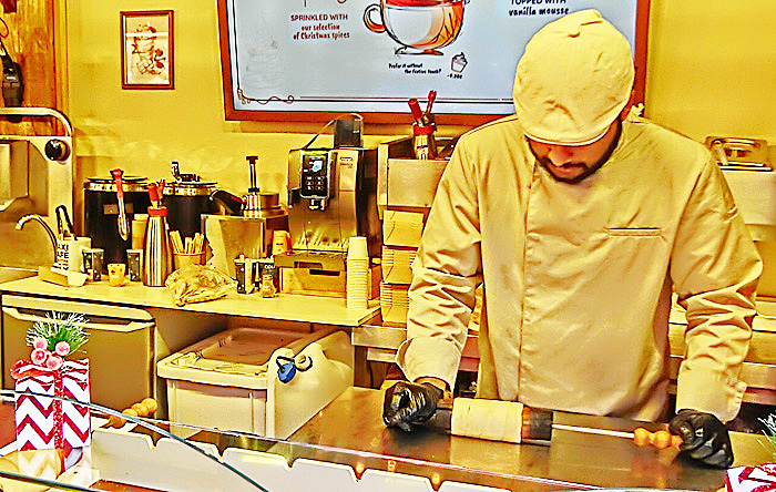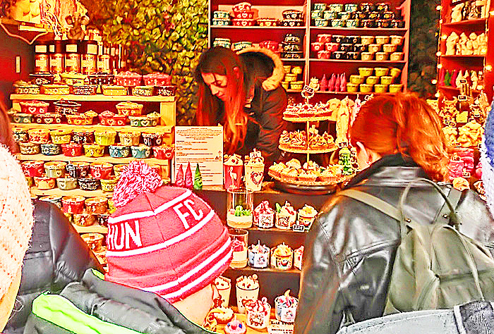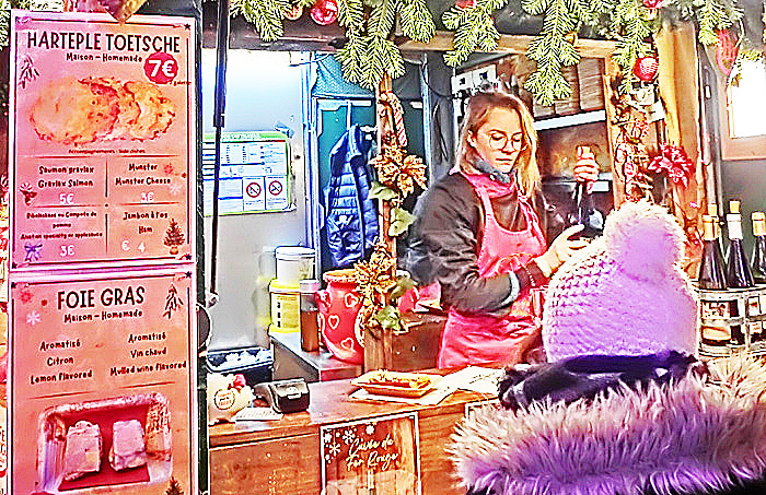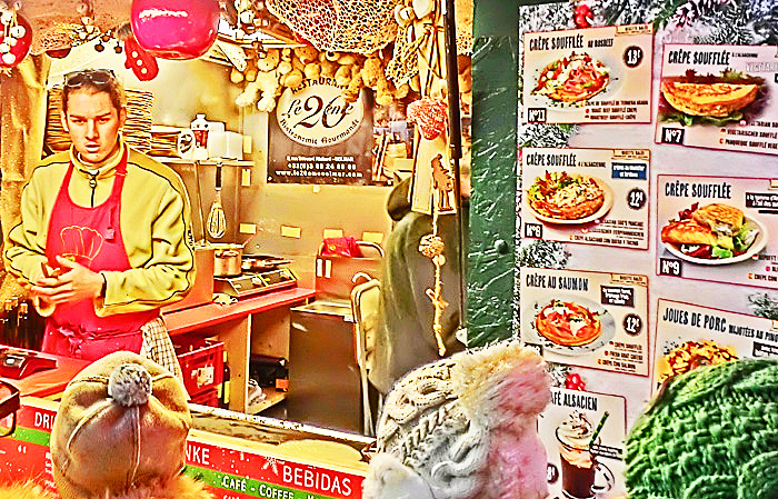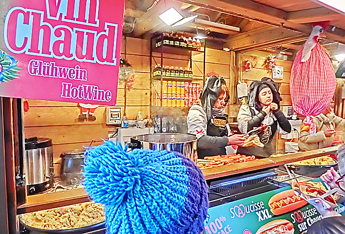 ほら、旅の仲間の女の子が、お店のお姉さんに、「ヴァンショー」を、発注していますよ。日本人の女の子の発音を、真剣度100%の表情で聞き取っていた、お姉さんでしたが・・・