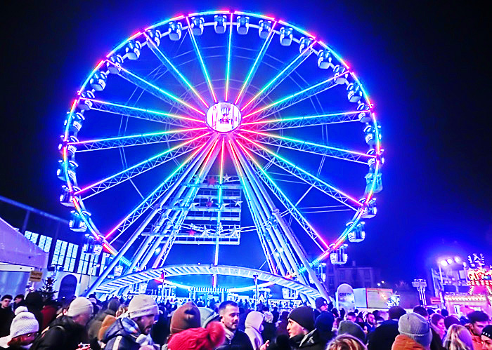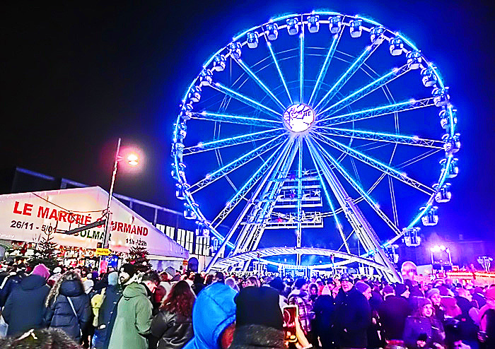 ヌガーの専門店を後にして、さらに進むと、正面に、昨夜の夕食を食べた「マルシェ・グルマン」(グルメ・マーケット)がある、観覧車広場が見えてきましたよ。