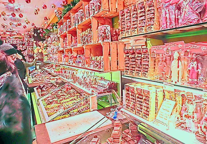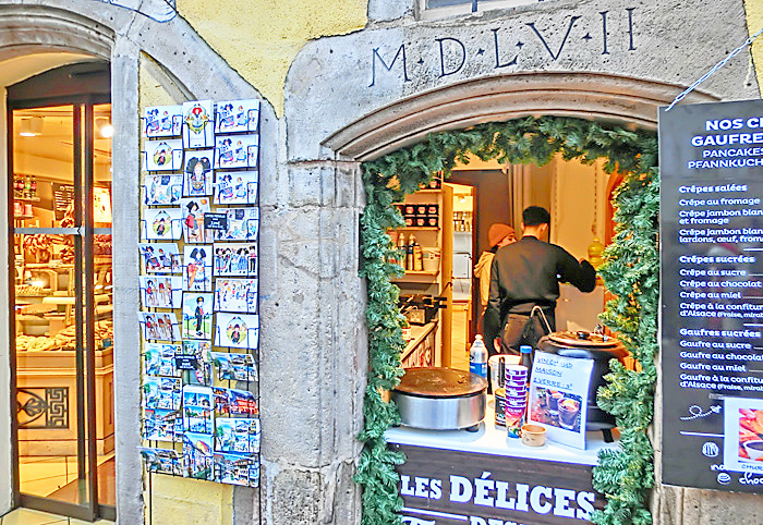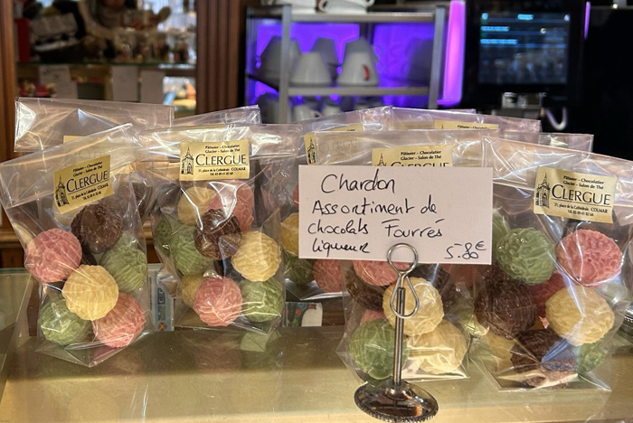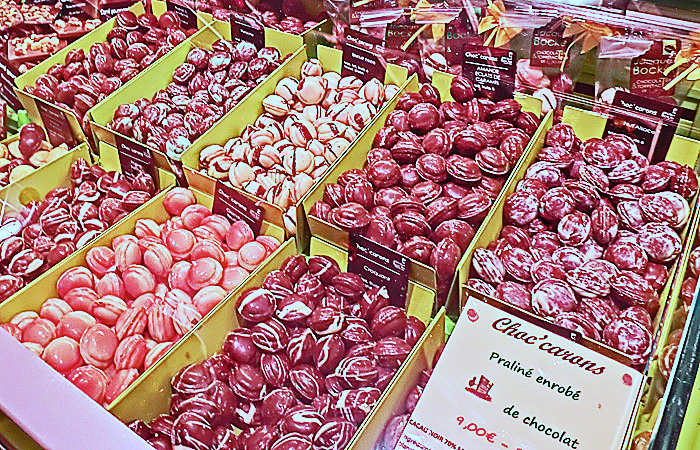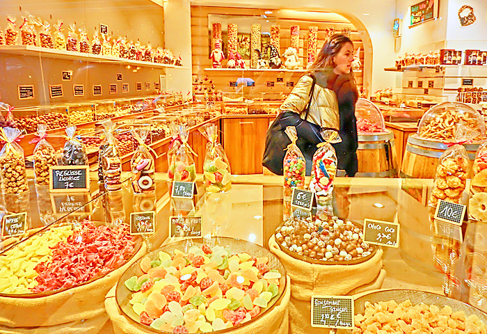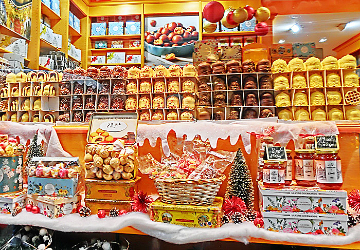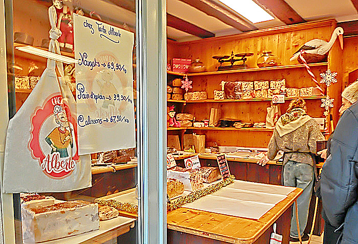 右手には、「ヌガー」と呼ばれるお菓子(ソフト・キャンディ)の専門店が・・・この「ヌガー」、日本でも、昭和の時代の駄菓子屋で見かけましたが、コルマールの街では、専門店がたくさんあるほど、今でも大人気なのだそうですよ。