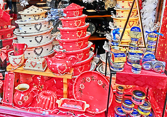 この「ジャンヌ・ダルク広場」では、下記のような「アルザス陶器」(スフレンハイム焼き)のお店が目立っており、その美しさに思わず買いたくなりましたが・・・日本まで持って帰るのが大変そうなので、泣く泣く断念。