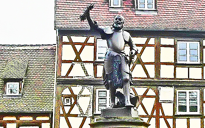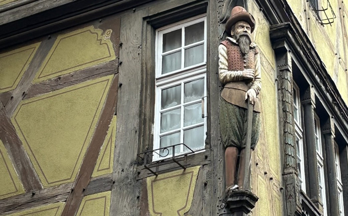 このたび、私がコルマールで一番気に入ったのが、このオジサン・・・クワかスキのような農具を持っていますから、農夫さんなのでしょうか?