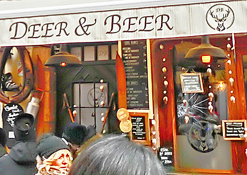 そう、店主のオジサンが、ウケを狙って名付けたに違いない、「鹿とビール」という店名・・・これ、絶対に、英語のダジャレですよね!!(笑)