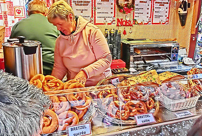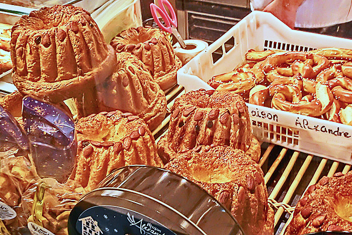 また、独特な卵麺の「シュペッツレ」や、「タルトフランベ」(薄く焼いたピザのような軽食で「フラムキッシュ」とも呼ばれる)、ドイツ風の「プレッツェル」と呼ばれる有名なパン(後述)も、人気が高いそうですよ。さらに、独特な形状の焼き菓子「クグロフ」は、アルザス地方を代表する食べ物として、世界的に有名(後述)。