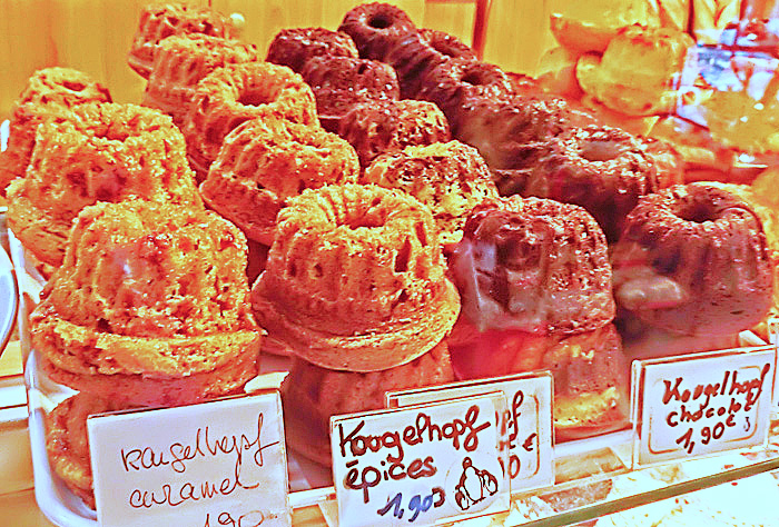 もちろん、アルザス名物の「クグロフ」も・・・クグロフが大好きな私にとって、色々な種類のクグロフが味わえるアルザス地方は、「ぜひ住んでみたい場所」のトップ3に入ります。他の2つは、ドイツの「バイエルン地方」と、個人的な秘密の「あそこ」ですけどね・・・(笑)