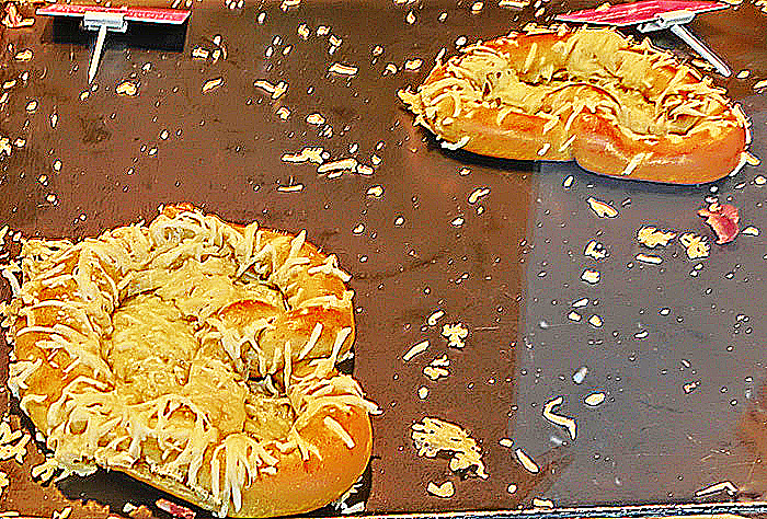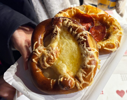 次のお店では、ピザ類のような物体と、ホット・サンドイッチのような物体が、何種類も販売されているようですが・・・わかりやすくて安価な商品なので、どうやら、お子様たちに、人気があるようですね(笑)。