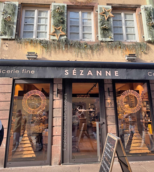 こちらの「セザンヌ」(印象派の有名画家と同じ名前)は、ハム、チーズ、ワイン、ジャムなどの食品店として有名・・・今回の旅の仲間たちも、どこで調べたのか、ちゃっかりと入店&購入して、狂喜しておりました。(「光の学校」スタッフ撮影の動画でも、店内が紹介されていますので、探してみてくださいね)