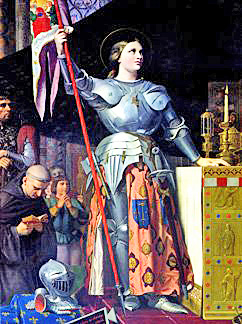 こちらの勇ましい女性が、その「ジャンヌ・ダルク」さん・・・勇敢に戦ってフランスを救ったのに、時の権力者から使い捨てにされ、最後は敵軍の手で火あぶりの刑に処せられたという、悲劇のヒロインですよ。(ネット上で大量に出回っている画像であり、実在の人物です)