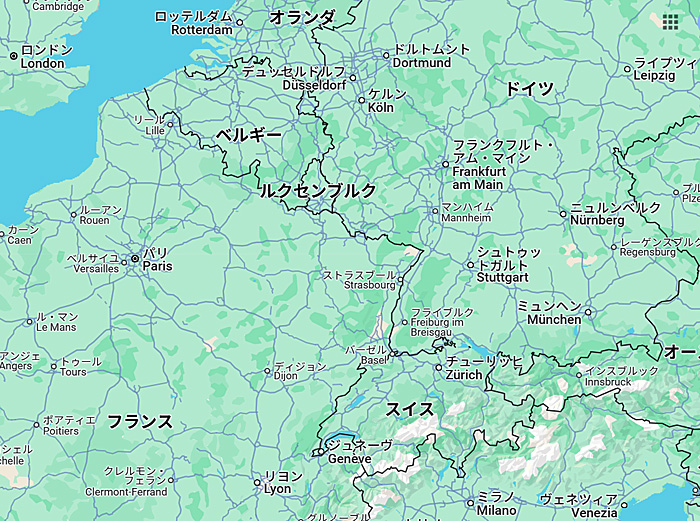 なぜ、フランスの領土なのに、ドイツ系の人々が大部分を占め、ドイツ語系の言葉を話す人が多いのかと言えば・・・そのヒントは、次の地図をご覧ください。この地図を凝視すれば、ほら、「あること」に、お気づきになりませんか?
